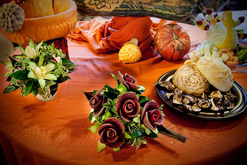 Centrotavola di Rose rape rosse e zucchine